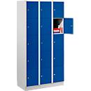 Variantenoverzicht - Vakkenkast, 3 compartimenten met telkens B 300 mm, 15 vakken, veiligheidscilinderslot, onderbouw naar keuze sokkel of poten